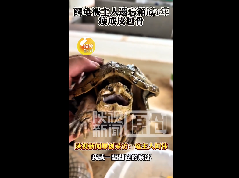 近日,广东一位龟类玩家阿伟(化名)发现家中的一只鳄龟竟然被遗忘在了箱底一年,虽然还活着,却瘦成了皮包骨,因此也被许多网友戏称为“骷髅龟”。