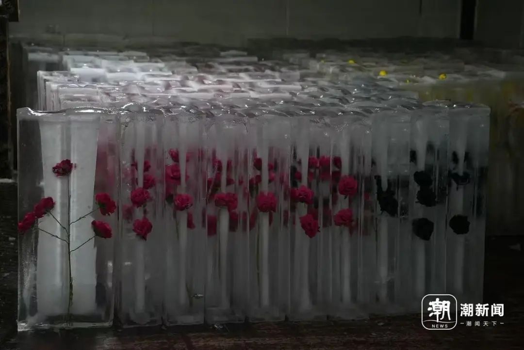七夕节用来打造“冰封花墙”的定制玫瑰冰 记者 杨晓轩 摄