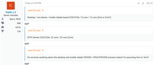 根据Kepler_L2最新透露,AMD下一代锐龙CPU将采用台积电N2P"2nm"工艺技术用于CCD(计算芯片),而IOD(输入/输出芯片)将采用台积电的N3P"3nm"工艺技术。