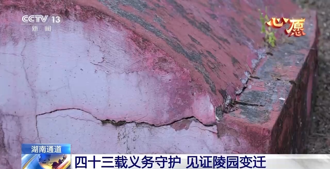通道县烈士陵园守陵员 石进华:木牌有半截的、三角的、连同根断掉的都有。得拼出来,一个墓一个墓去拼的。