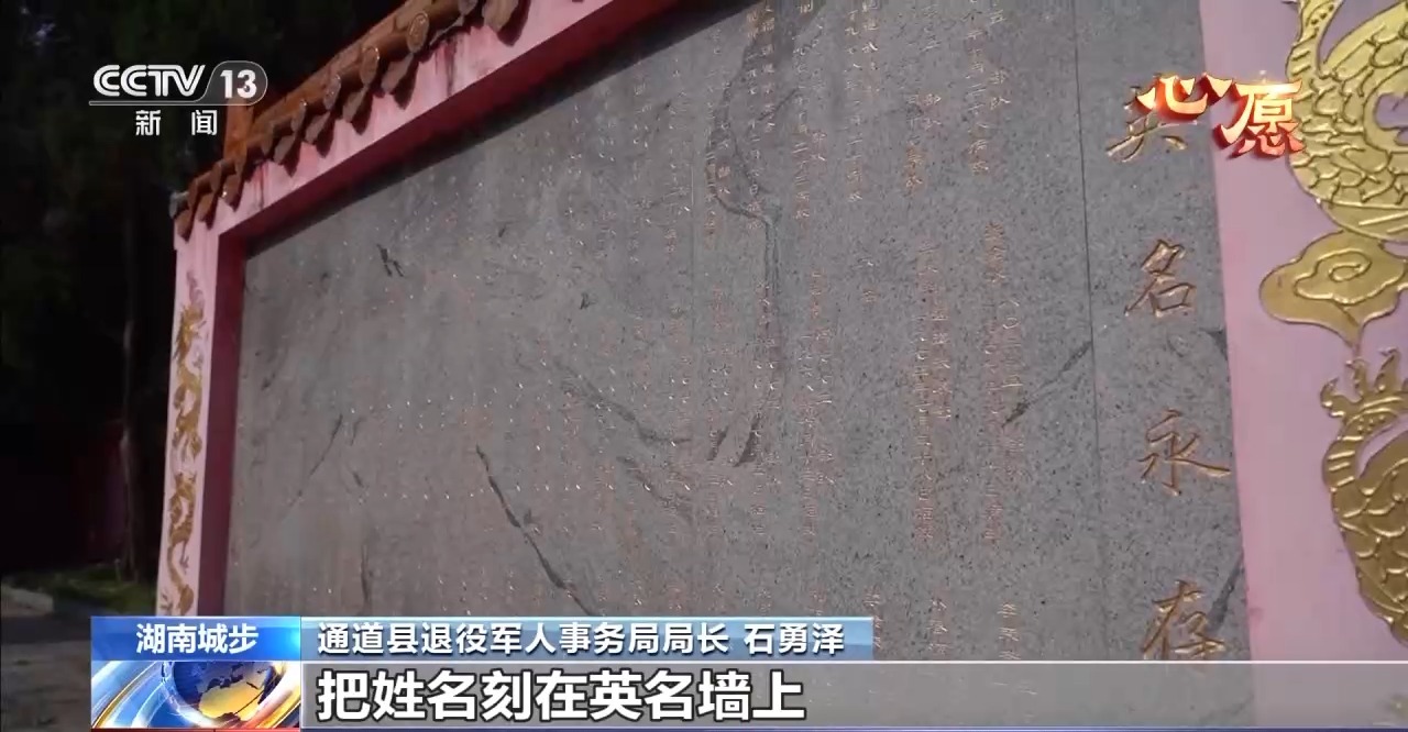 通道县退役军人事务局局长 石勇泽:上英名墙是应该的,到时候我们把四名烈士的姓名刻在英名墙上。