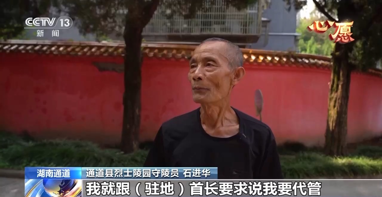 通道县烈士陵园守陵员 石进华:他们以前千里迢迢来我们通道县,有来自内蒙古、云南、贵州、四川、河南、河北的,全国各地都有。把陵园改造好了,我也放心了,我也高兴。这样改造,这也是我们对烈士的尊重。