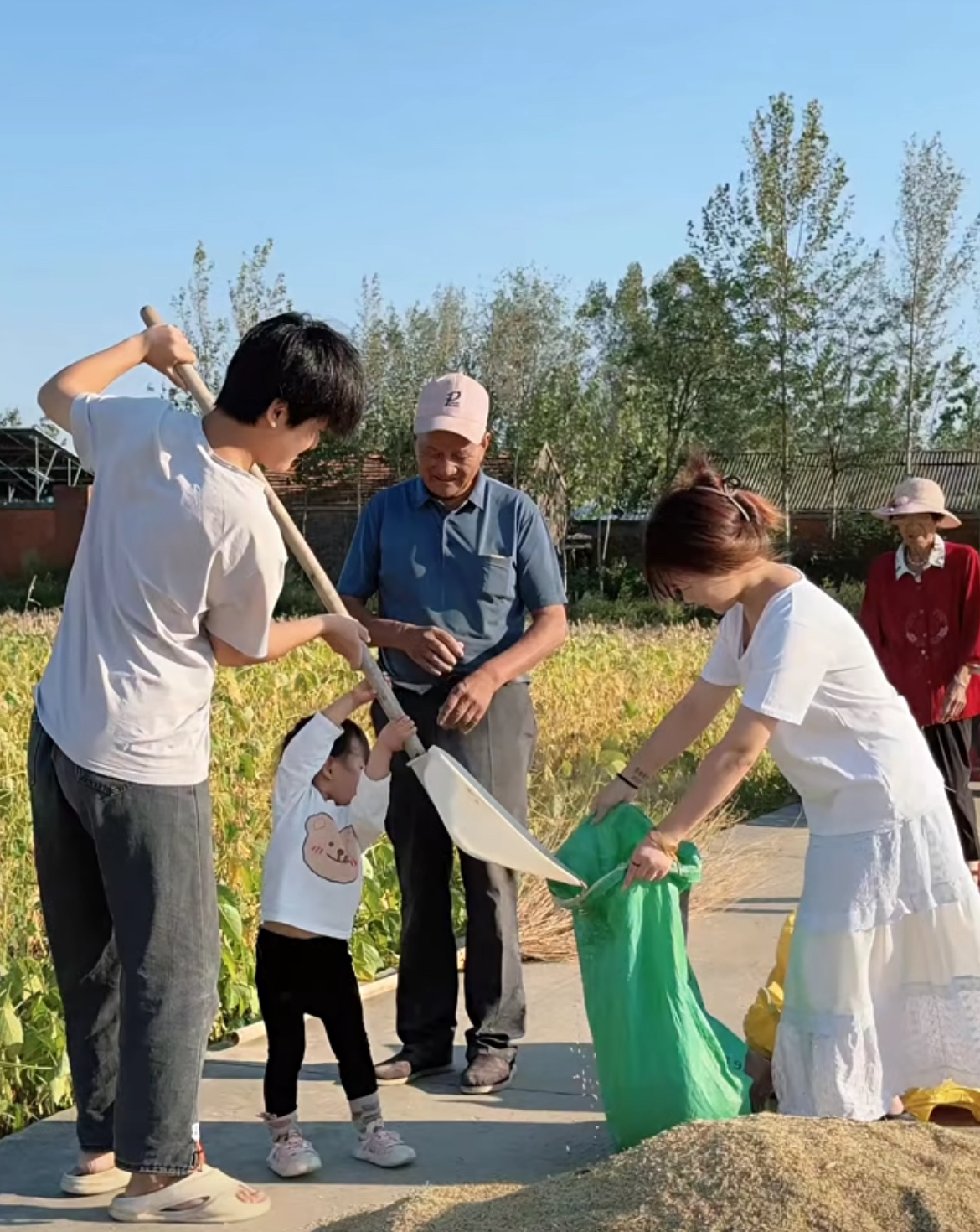 事发当天,三名遇害者在外婆家帮忙。网络截图。