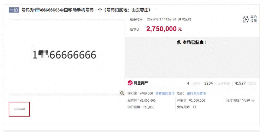 尾号8888888手机竞拍127万...