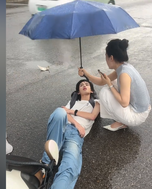 安徽女子暖心撑伞引热议 男孩高颜值意外走红网络