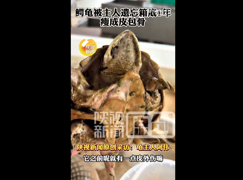 “鳄龟被遗忘箱底一年 饿成‘骷髅龟’接受救治”