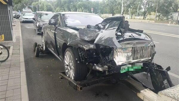 网传消息显示,一辆劳斯莱斯闪灵轿车停在公路上,车身损毁严重,安全气囊弹出。车外人员疑似知名车评人陈震。记者对比该车的车牌号,与此前媒体曝光的车评人陈震车辆为同一号牌。有网友称,该事故发生在万寿路。