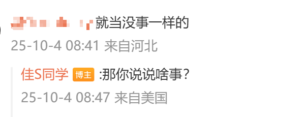 还有网友在陈震妻子@佳S同学 动态下评论“就当没事一样的”,她回复:“那你说说啥事?”