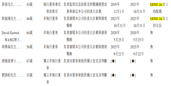此外,苏亚洲现任好医生云医疗执行董事兼行政总裁,薛源(GENG Jie配偶)任执行董事兼首席技术官,耿越飞(GENG Jie兄长)任非执行董事。