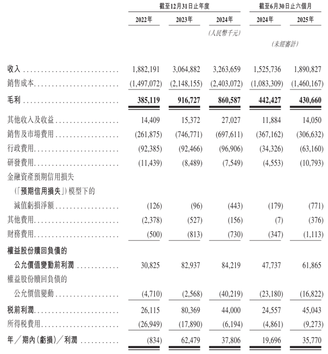 招股书显示,在过去的2022年、2023年、2024年和2025年前六个月,好医生云医疗的营业收入分别为人民币18.82亿、30.65亿、32.64亿和18.91亿元,相应的净利润分别为人民币-83.4万、6247.9万、3780.6万和3577.0万元。