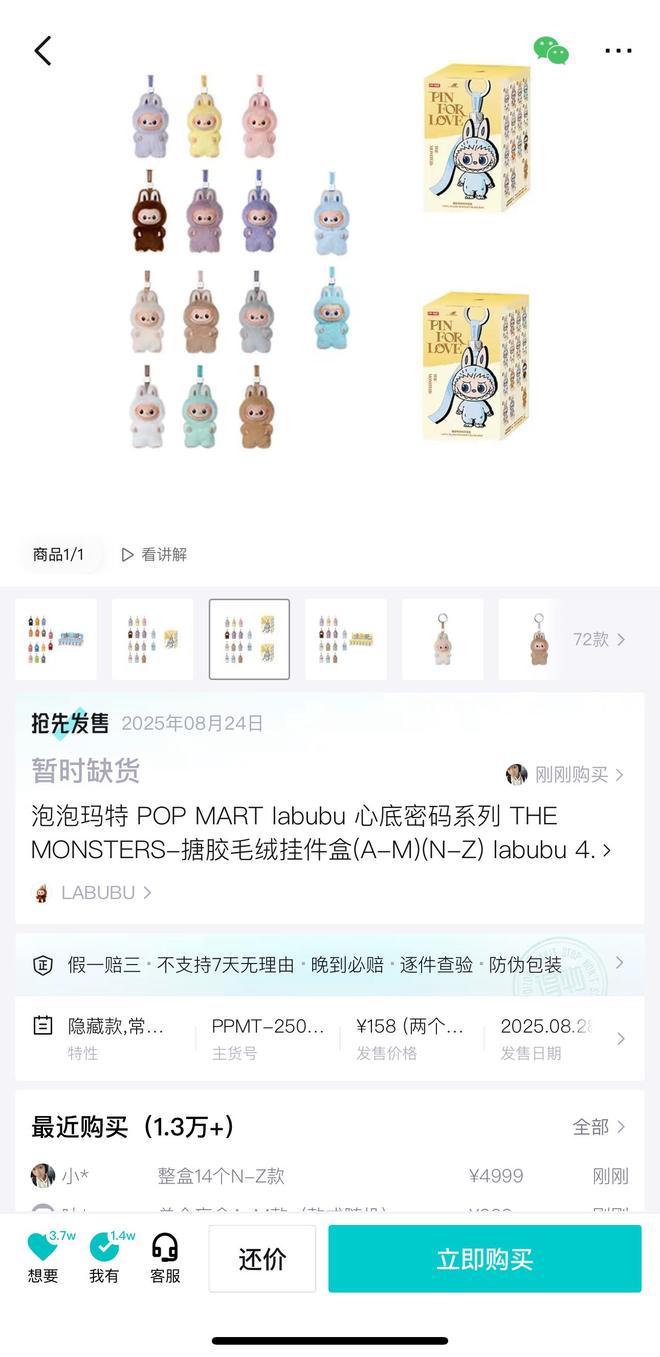 泡泡玛特迷你LABUBU发售引起关注,二手平台价格炒至3200元