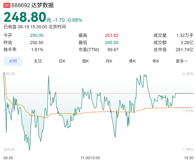 2024年6月12日,达梦数据在上交所科创板挂牌上市,截至8月19日收盘,公司股价报248.8元,总市值281.74元。