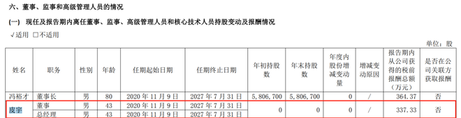 年报显示,皮宇2024年从公司领取税前薪酬为337.33万元。