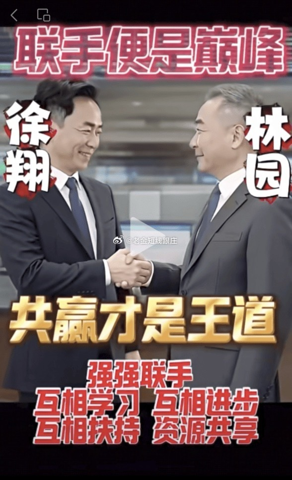 甚至还有“徐翔林园强强联合”的AI视频上线。视频中,“徐翔”“林园”身着西装,相视一笑,字幕写着“共赢才是王道,联手即是巅峰”“强强联合,纷争再起”。有网友评价到:“浓浓的短剧味儿。”